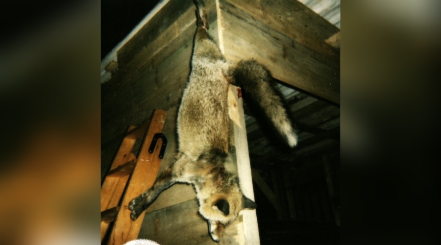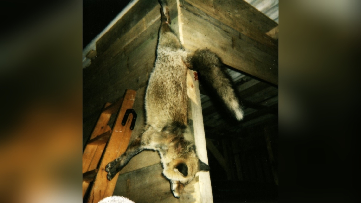 Großvater im Hof und hielt den erlegten Fuchs in die Höhe. Seinen