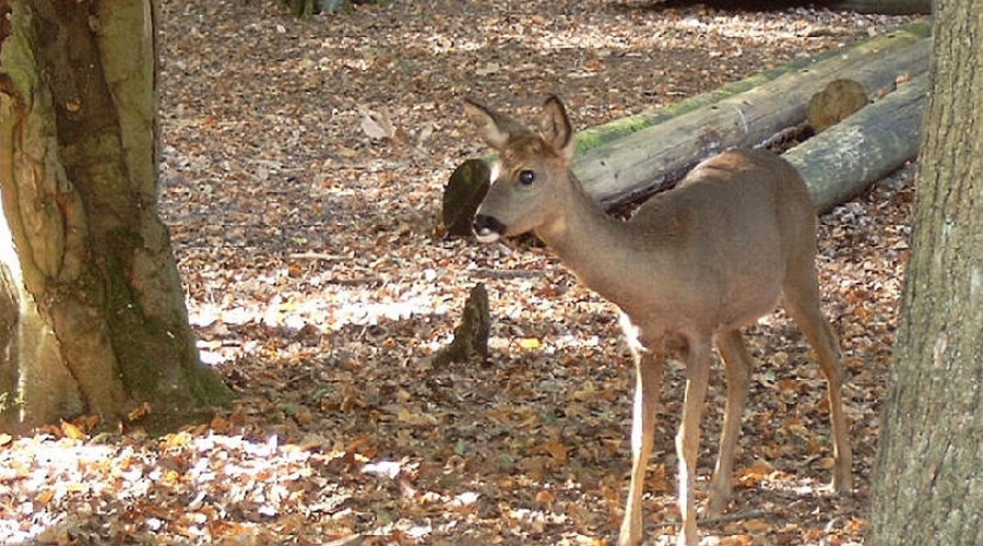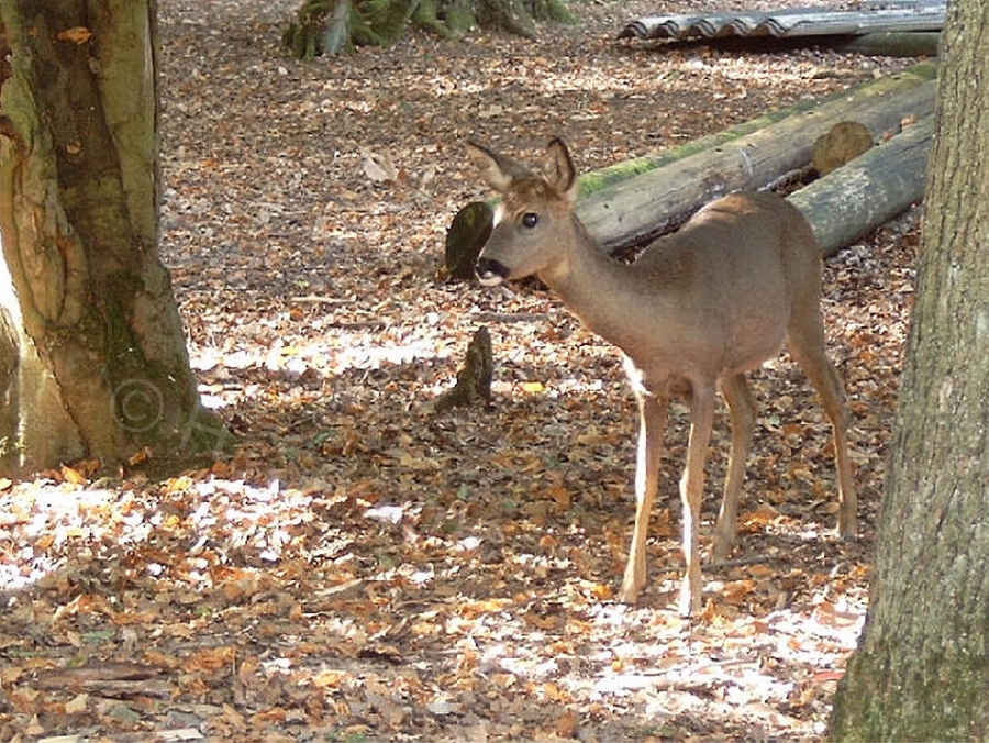 mich an einen Baumstamm und beobachtete die Rehe noch eine Weile.