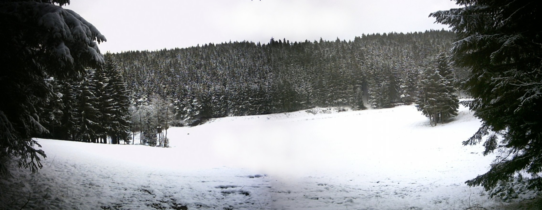 herbstlich grau schimmernden Fichtenwald. Hell war die Blöße deshalb,